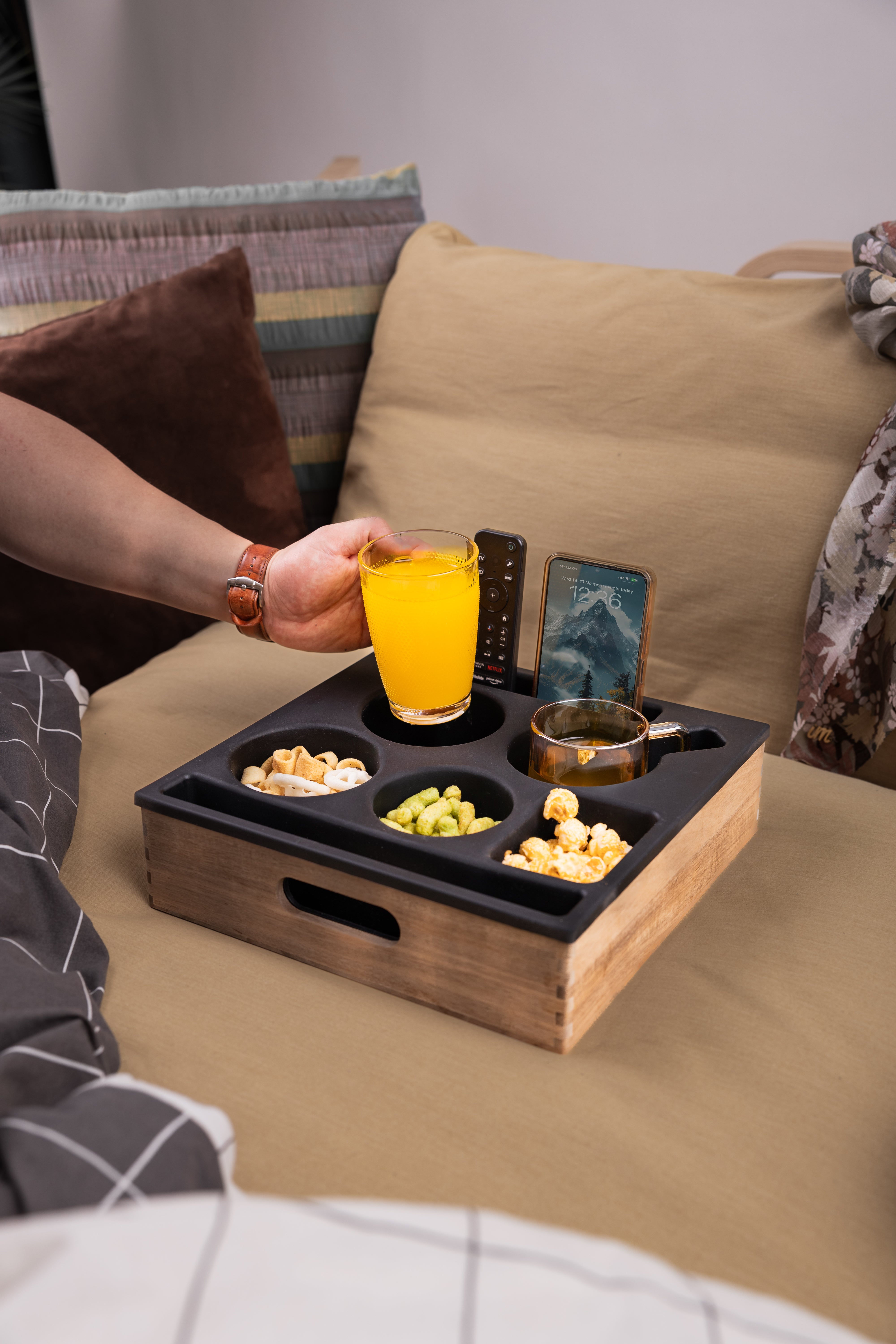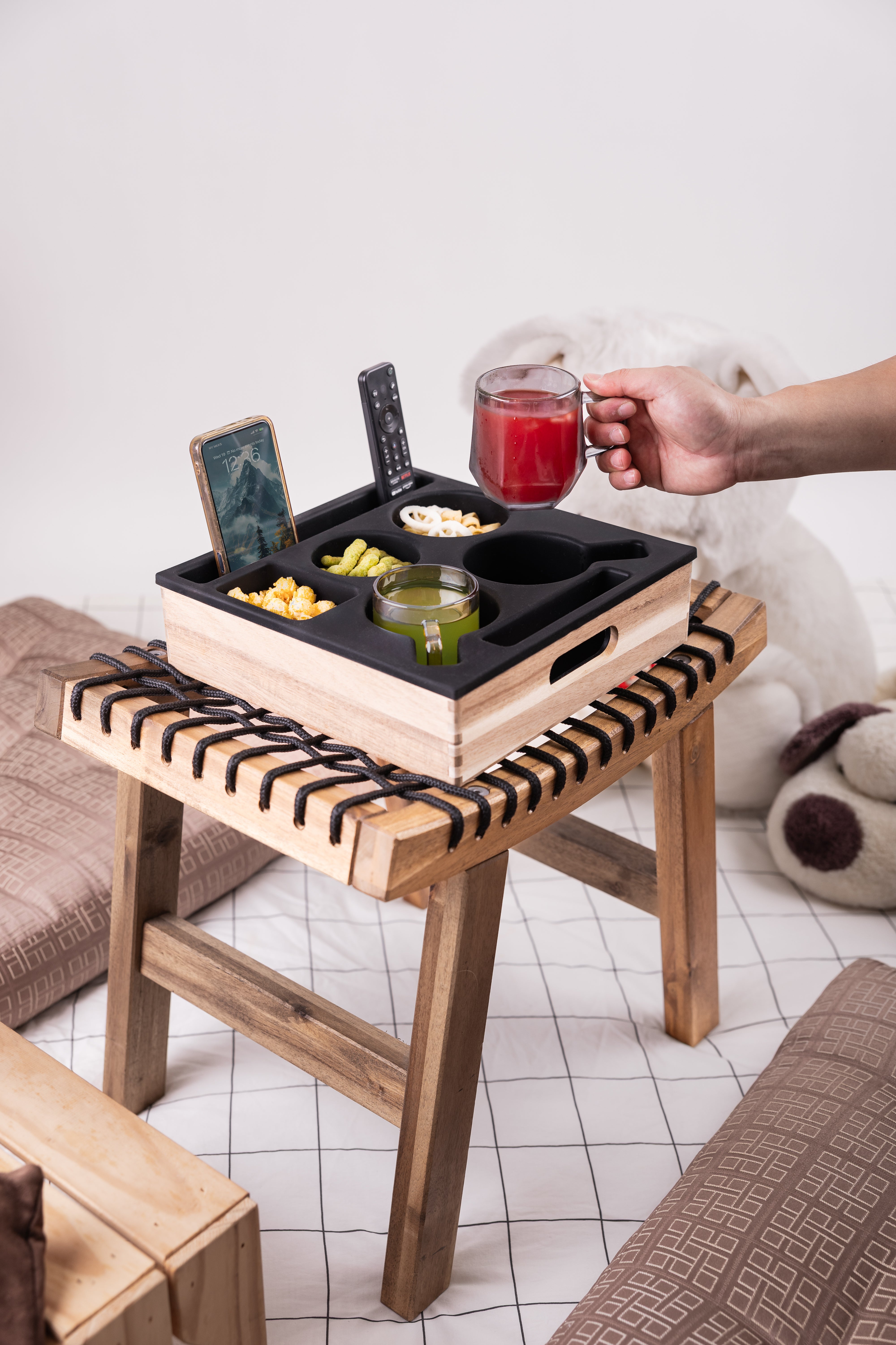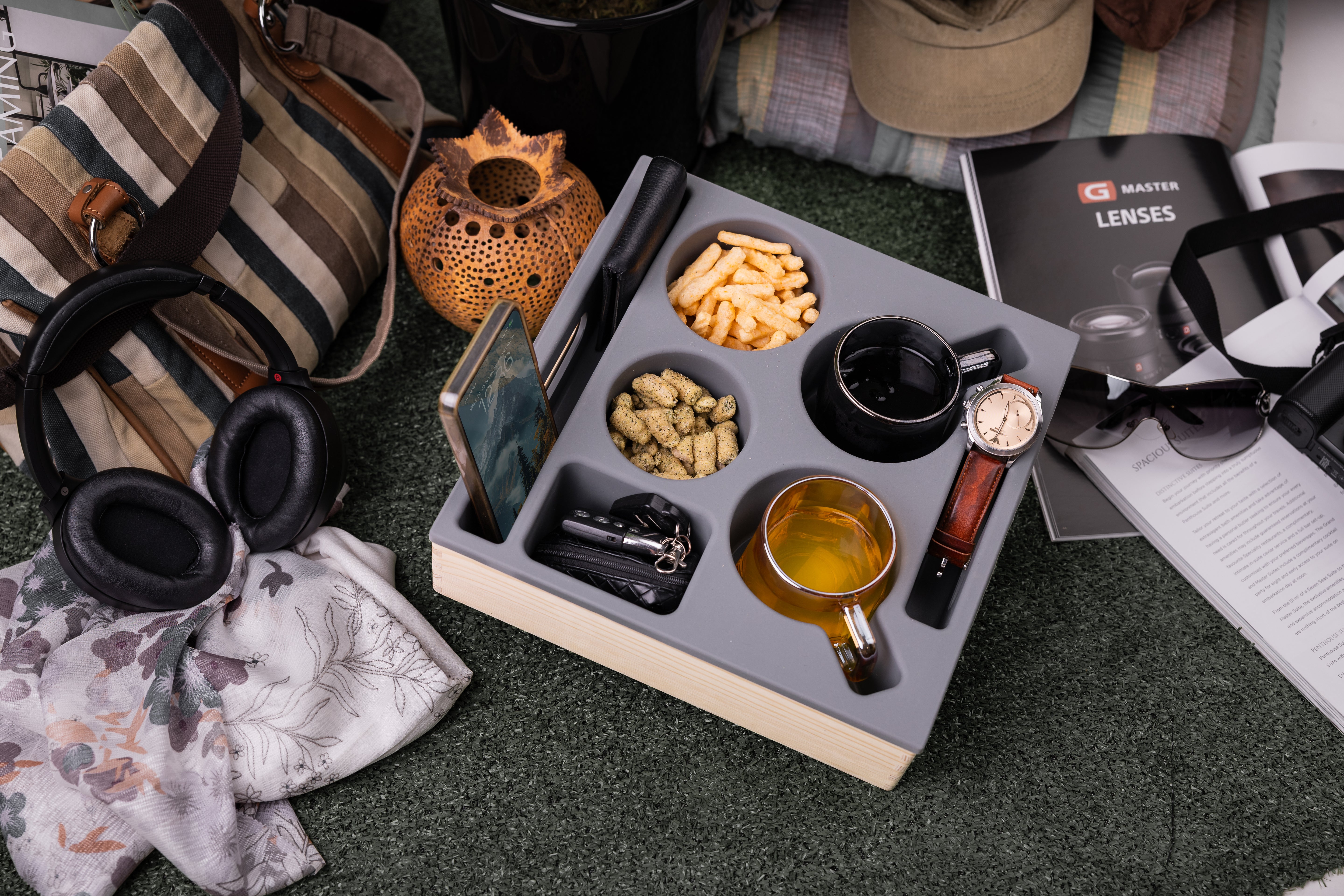 Modern grey snack caddy featuring: